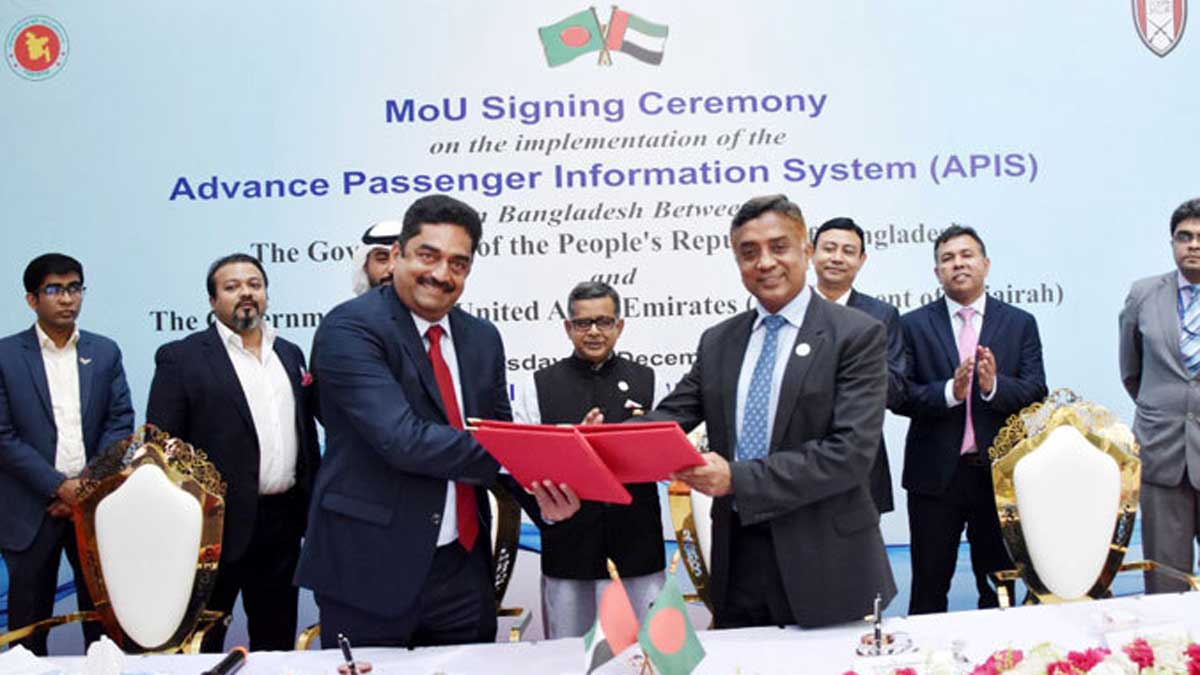 বাংলাদেশ বেসামরিক বিমান চলাচল কর্তৃপক্ষ (বেবিচক) দেশে অ্যাডভান্স প্যাসেঞ্জার ইনফরমেশন সিস্টেম (এপিআইএস) প্রতিষ্ঠার জন্য সংযুক্ত আরব আমিরাতের সঙ্গে একটি চুক্তি (মেমোরেন্ডাম অব আন্ডারস্ট্যান্ডিং) স্বাক্ষর করেছে।
