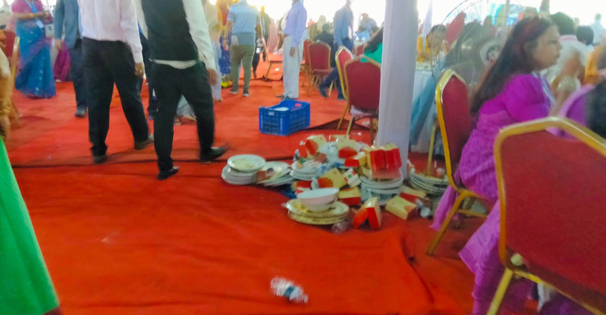 অনুষ্ঠান প্রাঙ্গণে বিশেষ করে খাবার পরিবেশনের স্থানে পরিবেশ ছিল নাজুক। দেখা যায়, যে যেখানে খুশি খাবারের উচ্ছিষ্ট ও ময়লা ফেলে গেছেন। কিন্তু পরিষ্কার করার কেউ নেই। পাশাপাশি হাত পরিষ্কার করার জন্য স্থাপিত বেসিনগুলোতে পর্যাপ্ত হ্যান্ডওয়াশ ছিল না, জমে ছিল পানি। অনুষ্ঠানে খাবারের জন্য বসানো হয় প্রায় ২০০টি টেবিল। কিন্তু সে অনুযায়ী খাবার পরিবেশকের সংখ্যা ছিল খুবই কম।