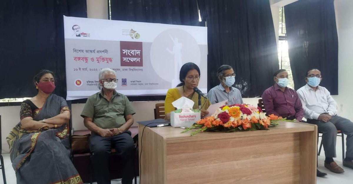 বুধবার (১৬ মার্চ) দুপুরে ঢাকা বিশ্ববিদ্যালয়ের চারুকলা অনুষদের ওসমান জামাল মিলনায়তনে আয়োজিত এক সংবাদ সম্মেলনে এসব তথ্য জানানো হয়। প্রদর্শনীটি মুক্তিযুদ্ধ বিষয়ক মন্ত্রণালয়ের সহযোগিতায় ঢাবি চারুকলা অনুষদের ভাস্কর্য বিভাগের তত্ত্ববধানে অনুষ্ঠিত হতে যাচ্ছে।