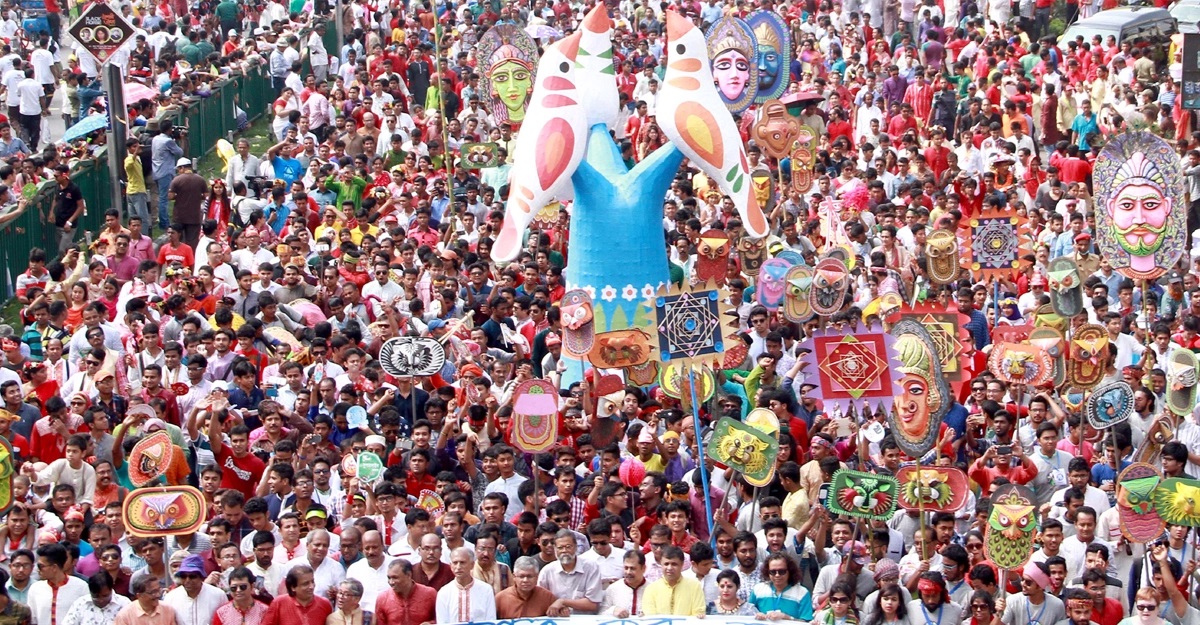 বাংলাদেশে প্রতিবছর নানা আনুষ্ঠানিকতার মধ্য দিয়ে পালন করা হয় বাংলা নববর্ষ বা পহেলা বৈশাখ। আর এই আনুষ্ঠানিকতার মধ্যে সবচেয়ে উল্লেখযোগ্য হচ্ছে ঢাকা বিশ্ববিদ্যালয়ের চারুকলা ইনস্টিটিউটের মঙ্গল শোভাযাত্রা। প্রতিবছর পহেলা বৈশাখের সকালে বাদ্যযন্ত্রের তালে নানা ধরনের বাঁশ-কাগজের তৈরি ভাস্কর্য, মুখোশ হাতে বের হয় বর্ণাঢ্য এই মিছিল।