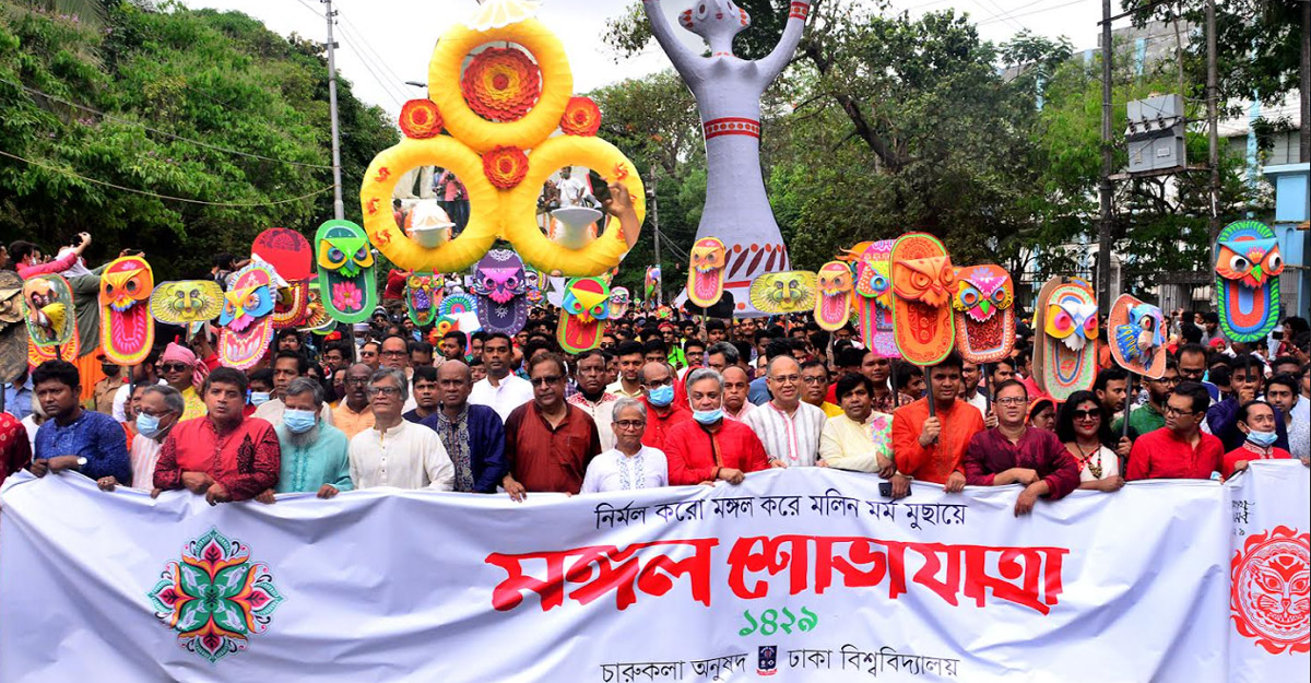 বর্ণাঢ্য কর্মসূচির মধ্য দিয়ে বৃহস্পতিবার ঢাকা বিশ্ববিদ্যালয়ে (ঢাবি) বাংলা নববর্ষ-১৪২৯ উদযাপিত হয়েছে। এ উপলক্ষে সকাল ৯টায় টিএসসির রাজু ভাস্কর্য প্রাঙ্গণ থেকে উপাচার্য অধ্যাপক ড. মো. আখতারুজ্জামানের নেতৃত্বে মঙ্গল শোভাযাত্রা বের করা হয়। মঙ্গল শোভাযাত্রা ক্যাম্পাসের ‘স্মৃতি চিরন্তন’ হয়ে পুনরায় টিএসসিতে গিয়ে শেষ হয়। ইউনেস্কো কর্তৃক ‘মানবতার স্পর্শাতীত সাংস্কৃতিক ঐতিহ্য’ হিসেবে ঘোষিত মঙ্গল শোভাযাত্রার এবারের স্লোগান হচ্ছে ‘নির্মল করো মঙ্গল করে মলিন মর্ম মুছায়ে’।
