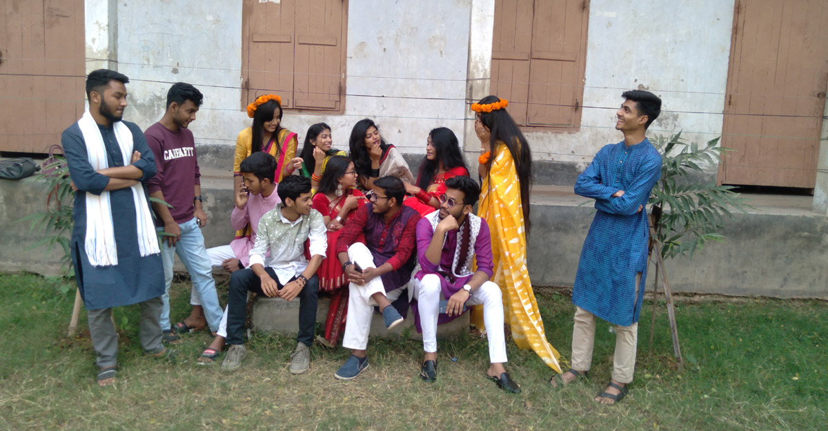 বন্ধ ক্যাম্পাসে নানান রকমের খুনসুটি আড্ডায় মগ্ন শিক্ষার্থীরা