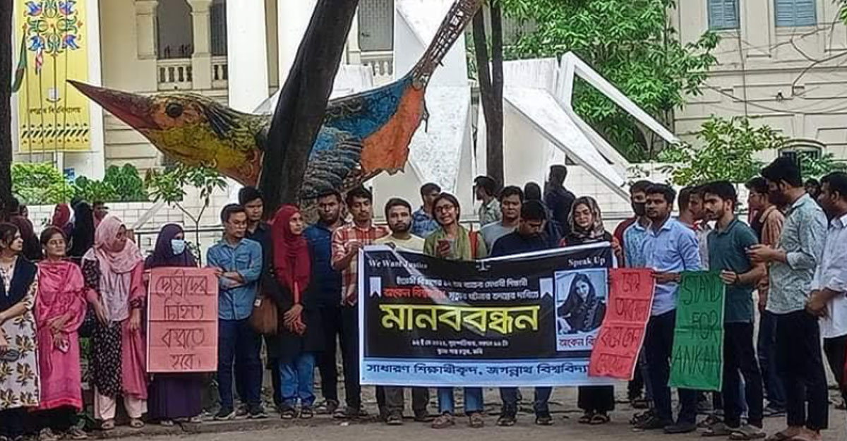 বৃহস্পতিবার (১২ মে) বেলা সাড়ে ১১টায় বিশ্ববিদ্যালয়ের শান্ত চত্বরে ইংরেজি বিভাগের ২০১৬-২০১৭ শিক্ষাবর্ষের শিক্ষার্থী অঙ্কন বিশ্বাসের মৃত্যুর ঘটনা উদঘাটনের দাবিতে অনুষ্ঠিত মানববন্ধনে বক্তারা এসব কথা বলেন। এ সময় মানববন্ধনে ইংরেজি বিভাগের শিক্ষার্থীসহ বিভিন্ন সংগঠনের নেতাকর্মী ও সাধারণ শিক্ষার্থীরা উপস্থিত ছিলেন।