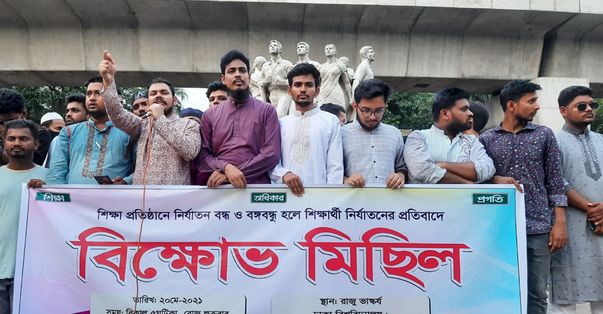 ঢাকা বিশ্ববিদ্যালয়সহ দেশের বিভিন্ন শিক্ষাপ্রতিষ্ঠানে শিক্ষার্থী নির্যাতনের প্রতিবাদে বিক্ষোভ মিছিল ও সমাবেশ করেছে বাংলাদেশ ছাত্র অধিকার পরিষদ।