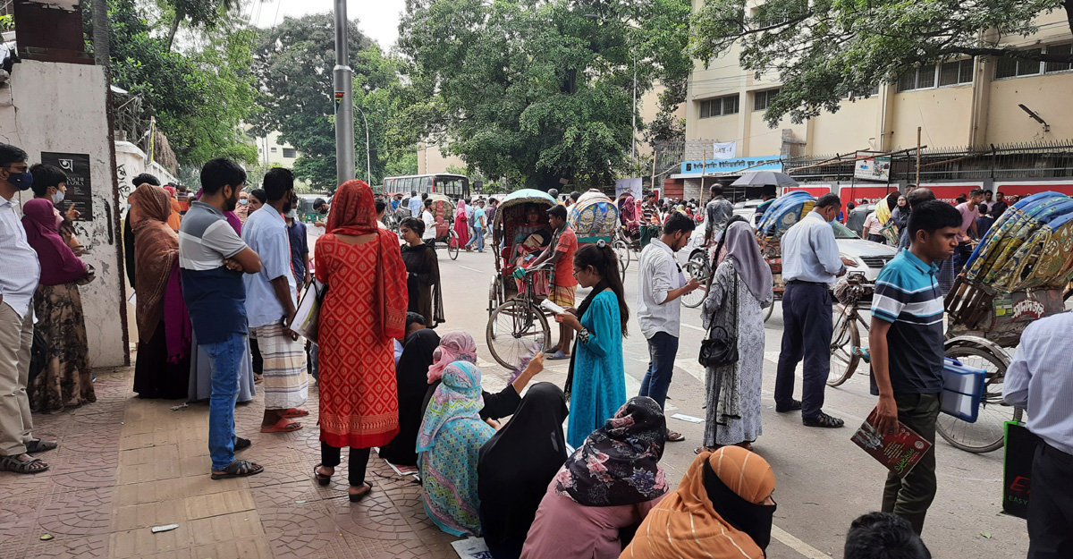 শনিবার (১১ জুন) পরীক্ষার হলে প্রবেশের পূর্ব মুহূর্তে বুয়েট ইঞ্জিনিয়ারিং ইউনিভার্সিটি স্কুল অ্যান্ড কলেজের সামনে এ দৃশ্য দেখা যায়।