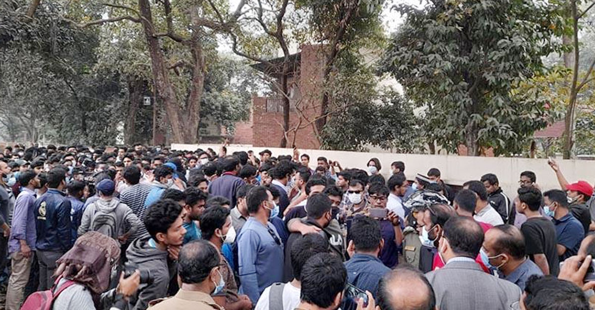 হল খোলার দাবিতে উপাচার্যের বাসভবনের সামনে জাবি শিক্ষার্থীদের অবস্থান