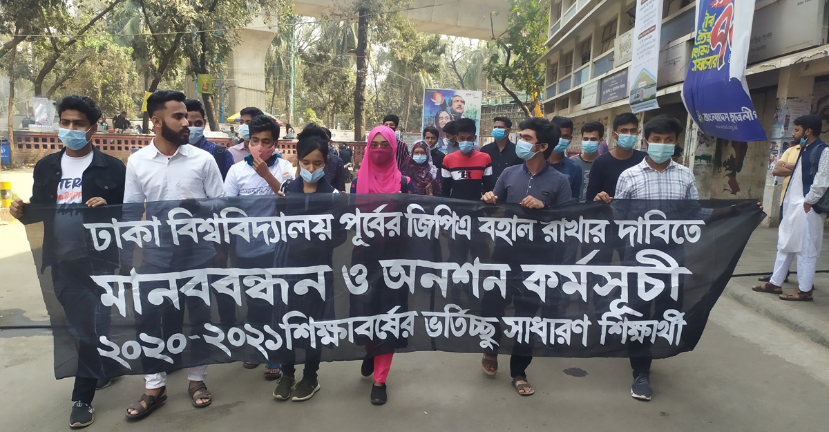 ২০২০-২১ শিক্ষাবর্ষের সাধারণ শিক্ষার্থীদের ব্যানারে এ কর্মসূচির আয়োজন করা হয়। সকালে বের হওয়া বিক্ষোভ মিছিল ক্যাম্পাসের বিভিন্ন সড়ক প্রদক্ষিণ করে। এরপর মানববন্ধন ও অনশন কর্মসূচি পালনের ঘোষণা দেন ভর্তিচ্ছুরা।