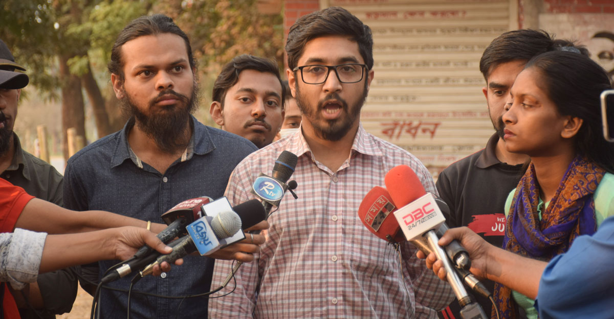 আন্দোলনরত শিক্ষার্থীরা সাংবাদিকদের সঙ্গে কথা বলছেন