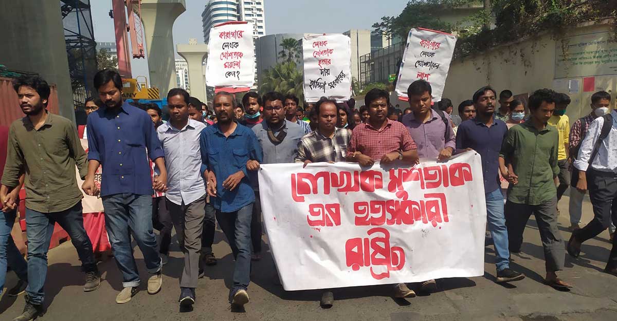 আজকের সমাবেশে ছাত্র ফেডারেশনের সাধারণ সম্পাদক নাসির উদ্দিন প্রিন্স বলেন, করোনার ১১ মাসে দেশে যে মহালুটপাট ও দুর্নীতি হয়েছিল তার বিরুদ্ধে কলম ধরেছিলেন লেখক মুশতাক। এই সরকার এতই অসহিষ্ণু, তার মসনদ এতই দুর্বল যে এই ন্যুনতম সমালোচনাও সহ্য করতে পারেনি। যেই এ সরকারের বিরুদ্ধে সমালোচনা করবে তাকেই ডিজিটাল নিরাপত্তা আইনের মাধ্যমে কারাগারের অন্ধকার প্রকোষ্ঠে ঠেলে দেওয়া হয়। রাষ্ট্রীয় দমন নিপীড়নের উৎকৃষ্ট উদাহরণ হিসেবে লেখক মুশতাক ইতিহাসে স্মরণীয় হয়ে থাকবেন।
