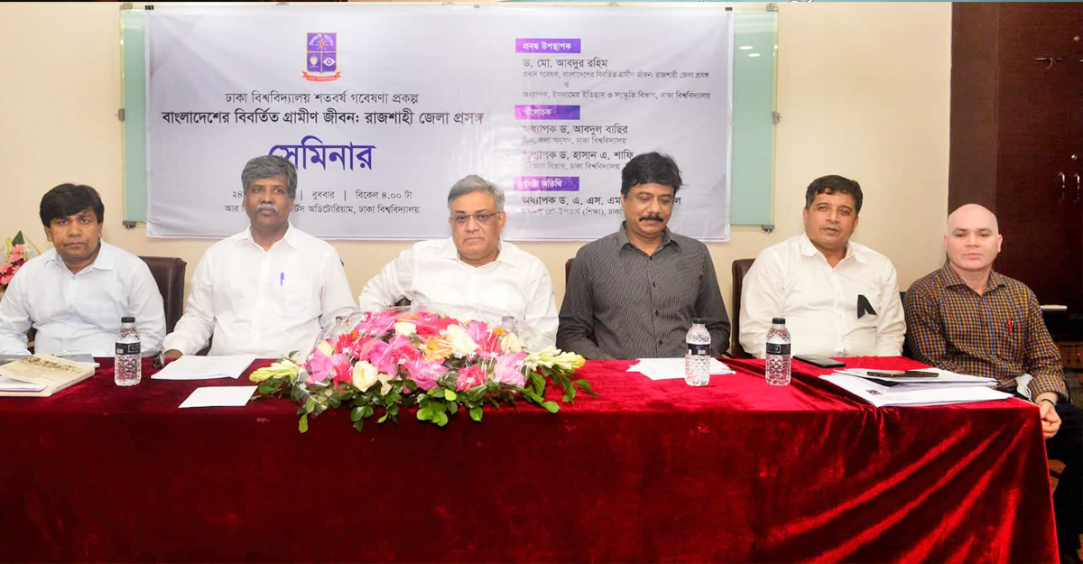 ঢাকা বিশ্ববিদ্যালয় (ঢাবি) শতবর্ষ গবেষণা প্রকল্পের অংশ হিসেবে ‘বাংলাদেশের বিবর্তিত গ্রামীণ জীবন : রাজশাহী জেলা প্রসঙ্গ’ শীর্ষক সেমিনার বুধবার (২৪ আগস্ট) আর সি মজুমদার আর্টস মিলনায়তনে অনুষ্ঠিত হয়েছে।