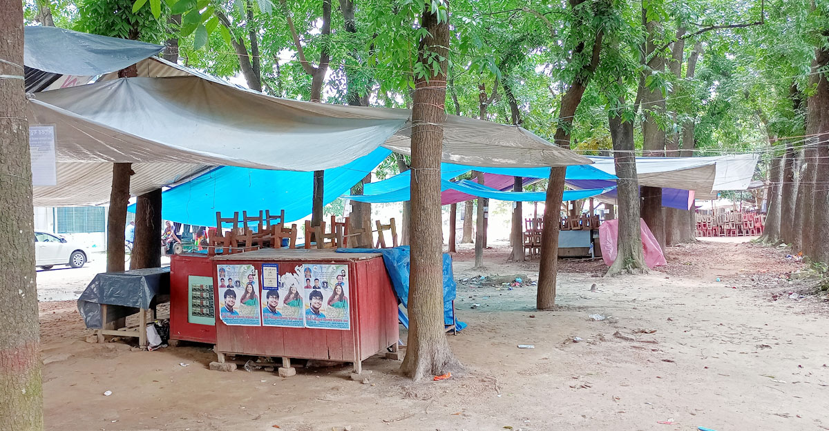 রাজশাহী বিশ্ববিদ্যালয়ে (২৫ আগস্ট) সময়সীমা নির্ধারণ করে অস্থায়ী দোকানপাট তুলে নেওয়ার নির্দেশ দিয়েছেন বিশ্ববিদ্যালয় প্রশাসন। এর প্রতিবাদে বিশ্ববিদ্যালয়ের একাডেমিক ভবনের আশপাশের খাবারের হোটেলসহ সব ধরনের অস্থায়ী দোকান বন্ধ রেখে প্রতিবাদ জানাচ্ছেন দোকানদাররা।