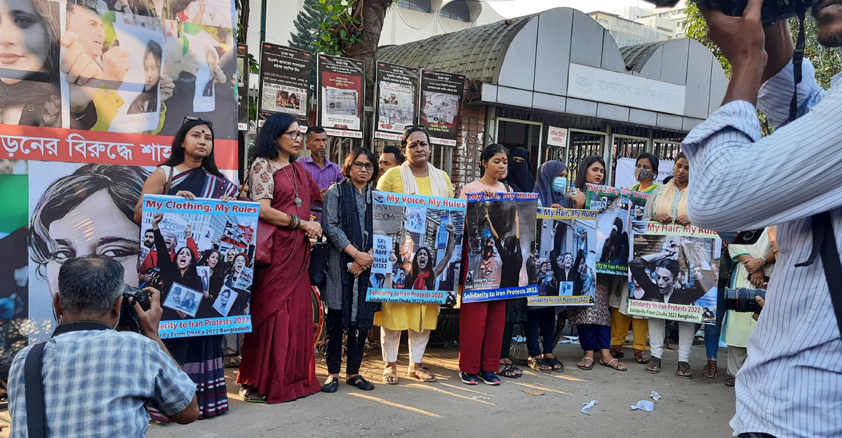 ইরানে চলমান নারী আন্দোলনে সংহতি জানিয়ে শাহবাগে সমাবেশ