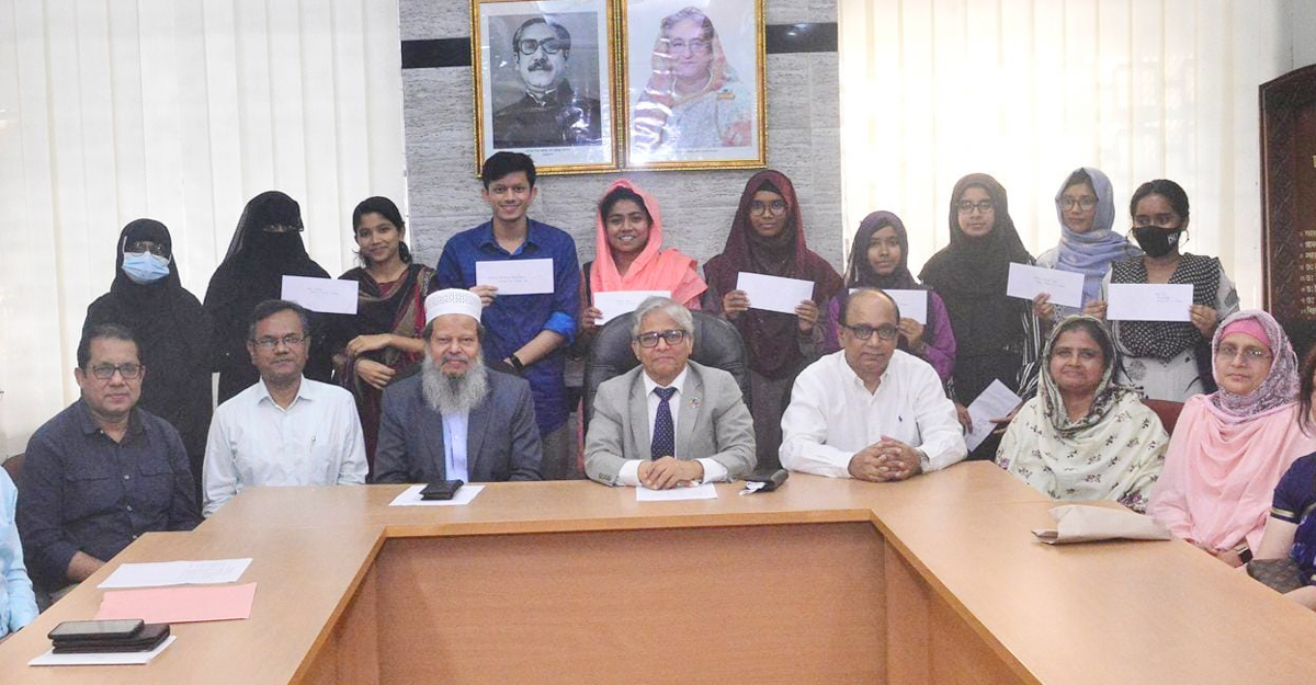 ঢাকা বিশ্ববিদ্যালয়ের উপাচার্য অধ্যাপক ড. মো. আখতারুজ্জামান মঙ্গলবার উপাচার্য লাউঞ্জে এক অনুষ্ঠানে প্রধান অতিথি হিসেবে উপস্থিত থেকে শিক্ষার্থীদের হাতে বৃত্তির চেক তুলে দেন।