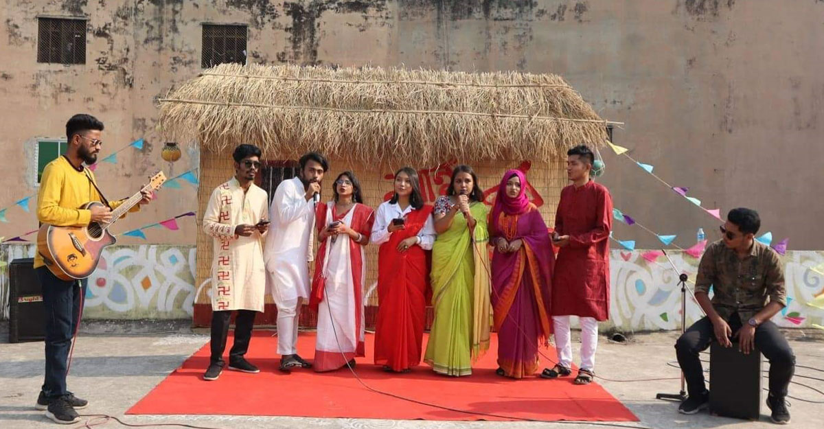 ‘ধনধান্য পুষ্প ভরা, আমাদের এই বসুন্ধরা।’ ও ‘চাঁন্দের আলো লাগে ভালো, চাঁদনি পসর রাইতে’ গান দুটি পরিবেশন করেন বিভাগের শিক্ষার্থী সৃজনী, স্রাব্দী, বিদিশা, মিশু, নুমং, মুহিত, রুদ্র এবং জান্নাত। পরে নৃত্য পরিবেশন করেন মৃদুলা, মুহিত, সৃজনী, স্রাব্দী, মিশু ও নুমং। কবি রূদ্র মোহম্মদ শহীদুল্লাহ রচিত ‘খুব কাছে এসো না’ স্রাব্দী তালুকদার এবং ‘তুমি যদি এইহানে থাকতা’ কবিতা আবৃত্তি করেন মিশু।