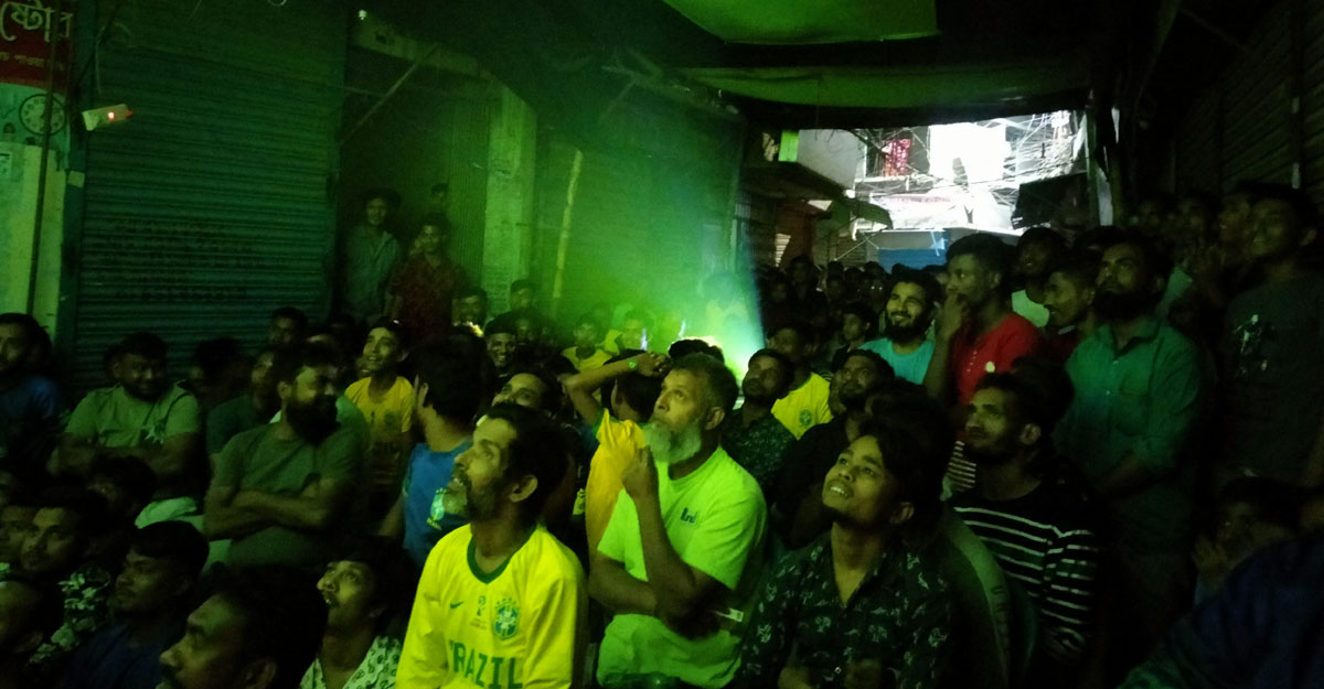 বৃহস্পতিবার (২৪ নভেম্বর) দিবাগত রাতে সরেজমিনে দেখা যায়, জগন্নাথ বিশ্ববিদ্যালয়সহ পুরান ঢাকার নারিন্দা, ওয়ারী, ভিক্টোরিয়া পার্ক, মুরগী টোলা মোড়, রায় সাহেবের বাজার, কলতা বাজার, লক্ষ্মীবাজারের প্রতিটি গলিতে টিভি, প্রজেক্টর, এলইডি স্ক্রিনে খেলা দেখার ব্যবস্থা করেছে স্থানীয়রা।