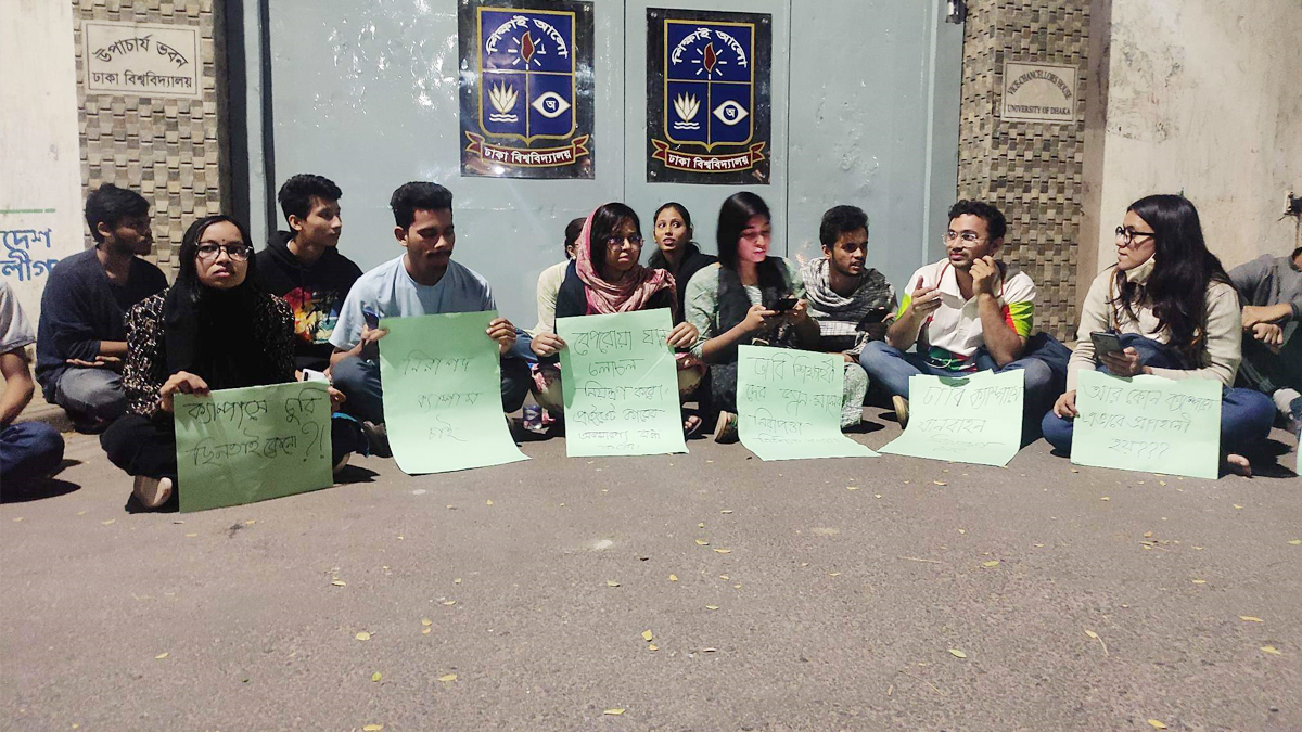 নিরাপদ ক্যাম্পাসের দাবিতে ভিসির বাসভবনের সামনে শিক্ষার্থীরা