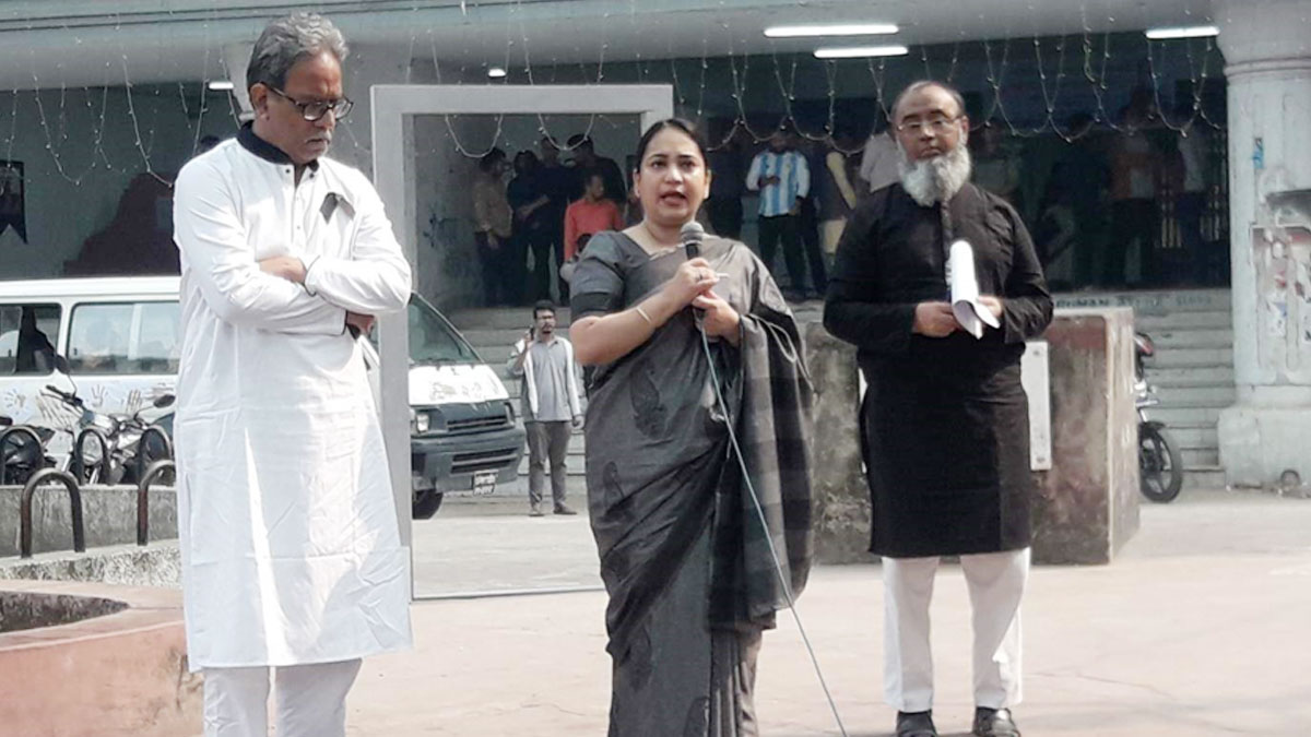 ডা. নুজহাত চৌধুরী বলেন, আমরা এমনো দেখেছি—শহীদ বুদ্ধিজীবীদের অবদানকে প্রশ্নবিদ্ধ করা হচ্ছে। কেন শহীদদের সংখ্যাকে প্রশ্নবিদ্ধ করা হয়? খালেদা জিয়া নিজের একটি বক্তব্যে শহীদদের সংখ্যাকে প্রশ্নবিদ্ধ করেছেন। এ ধরনের নির্লজ্জ রাজনীতির বিরুদ্ধে দাঁড়াবেন। জয় বাংলা আমাদের সবার স্লোগান। বঙ্গবন্ধুকে অস্বীকার করে কোনো রাজনীতি হতে পারে না, মুক্তিযুদ্ধকে অস্বীকার করে কোন রাজনীতি হতে পারে না।