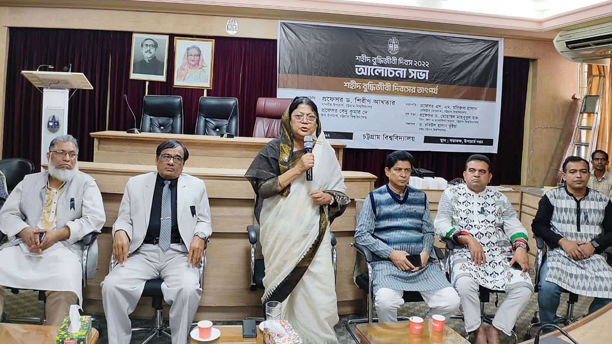 বুধবার (১৪ ডিসেম্বর) বেলা ১২টায় চবি উপাচার্য দফতরের সম্মেলন কক্ষে 'শহীদ বুদ্ধিজীবী দিবসের তাৎপর্য' শীর্ষক আলোচনা সভায় প্রধান অতিথির বক্তব্যে এসব কথা বলেন উপাচার্য অধ্যাপক ড. শিরীণ আখতার।
