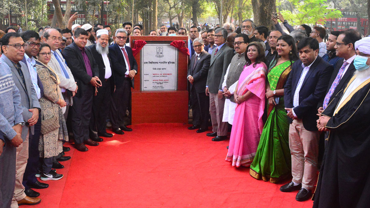 ঢাকা বিশ্ববিদ্যালয়ের শতবর্ষ পূর্তিকে স্মরণীয় করে রাখতে বিশ্ববিদ্যালয়ের মলচত্বরে ‘ঢাকা বিশ্ববিদ্যালয় শতবার্ষিক স্মৃতিস্তম্ভ অসীমতার স্তম্ভে বিশালতা, অন্তর্ভুক্ততা ও উদারতা’- নির্মাণের ভিত্তিপ্রস্তর স্থাপন কাজের উদ্বোধন করা হয়েছে।