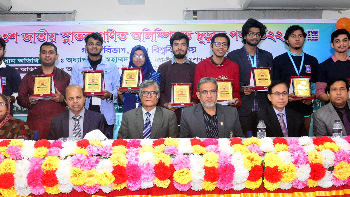 এই ‘১৩তম জাতীয় স্নাতক গণিত অলিম্পিয়াড'-এর চূড়ান্ত পর্বের পুরস্কার বিতরণী অনুষ্ঠানে বিশ্ববিদ্যালয়ের প্রো- ভাইস চ্যান্সেলর (প্রশাসন) অধ্যাপক ড. মুহাম্মদ সামাদ প্রধান অতিথি হিসেবে উপস্থিত থেকে বিজয়ীদের মাঝে পুরস্কার বিতরণ করেন।