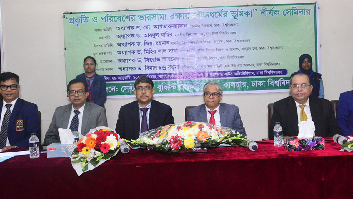 ঢাকা বিশ্ববিদ্যালয় সেন্টার ফর বুদ্ধিস্ট হেরিটেজ অ্যান্ড কালচার- এর উদ্যোগে রোববার (২৯ জানুয়ারি) বিশ্ববিদ্যালয়ের আর সি মজুমদার আর্টস মিলনায়তনে অনুষ্ঠিত ‘প্রকৃতি ও পরিবেশের ভারসাম্য রক্ষায় বৌদ্ধধর্মের ভূমিকা’ শীর্ষক এক সেমিনারে প্রধান অতিথির বক্তব্যে তিনি এসব কথা বলেন।