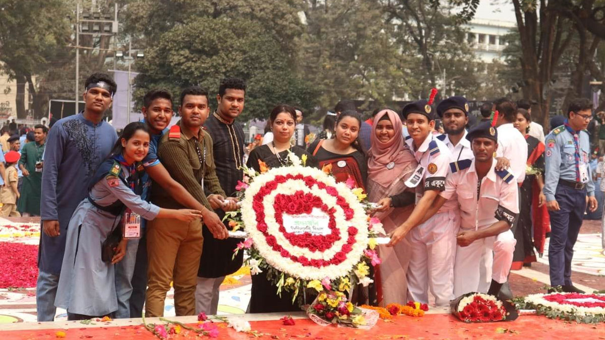 মহান শহীদ দিবস ও আন্তর্জাতিক মাতৃভাষা দিবস উপলক্ষে ভাষা শহীদদের স্মরণে কেন্দ্রীয় শহীদ মিনারে পুষ্পস্তবক অর্পণ করে শ্রদ্ধা জানিয়েছে ঢাকা বিশ্ববিদ্যালয়ের ক্রিমিনোলজি বিভাগ।