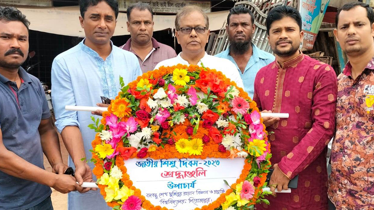 পিরোজপুর সদর উপজেলা পরিষদ সংলগ্ন বঙ্গবন্ধু চত্বরে তার প্রতিকৃতিতে শুক্রবার সকাল সাড়ে ১০টার দিকে পুষ্পস্তবক অর্পণ করেন বশেমুরবিপ্রবিপি উপাচার্য।