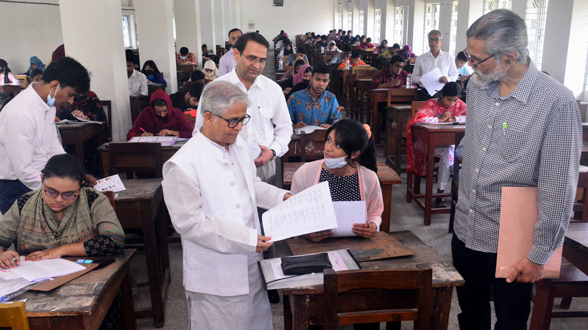 বিশ্ববিদ্যালয়ের উপাচার্য অধ্যাপক ড. মো. আখতারুজ্জামান, প্রো-ভাইস চ্যান্সেলর (প্রশাসন) অধ্যাপক ড. মুহাম্মদ সামাদ, প্রো-ভাইস চ্যান্সেলর (শিক্ষা) অধ্যাপক ড. এ এস এম মাকসুদ কামাল, কোষাধ্যক্ষ অধ্যাপক মমতাজ উদ্দিন আহমেদ, চারুকলা অনুষদের ডিন ও চারুকলা ইউনিট ভর্তি পরীক্ষার সমন্বয়কারী অধ্যাপক নিসার হোসেনসহ সংশ্লিষ্টরা পরীক্ষা কেন্দ্র পরিদর্শন করেন।