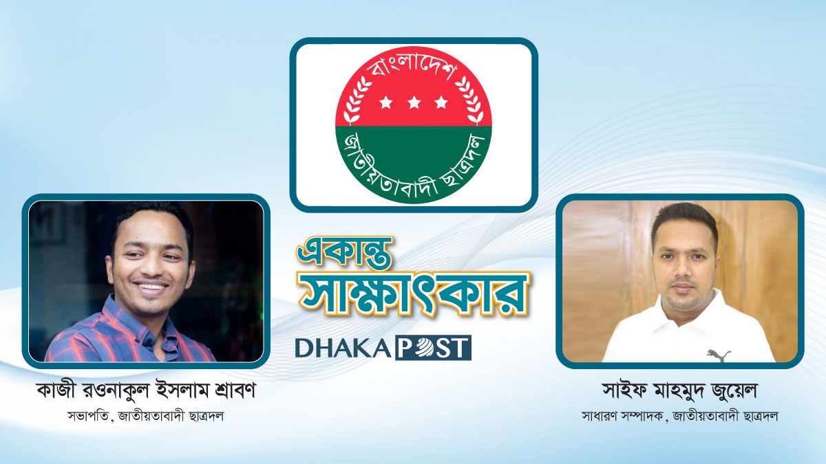 আগামী জাতীয় নির্বাচনে ছাত্রদলের ভূমিকা, দীর্ঘদিন ঢাকা বিশ্ববিদ্যালয় ক্যাম্পাসে প্রবেশ করতে না পারা, ডাকসু নির্বাচন, হামলা-মামলাসহ নানা বিষয়ে ঢাকা পোস্টের সঙ্গে কথা বলেছেন সংগঠনের কেন্দ্রীয় সভাপতি কাজী রওনাকুল ইসলাম শ্রাবণ ও সাধারণ সম্পাদক সাইফ মাহমুদ জুয়েল।
