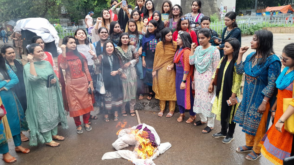 মঙ্গলবার (১১ জুলাই) দুপুরে ঢাকা বিশ্ববিদ্যালয়ের রাজু ভাস্কর্যের পাদদেশে ‘বিভিন্ন শিক্ষাপ্রতিষ্ঠানের নারী শিক্ষার্থীবৃন্দ’ ব্যানারে আয়োজিত প্রতিবাদ সমাবেশে তার কুশপুতুল পুড়ানো হয়।