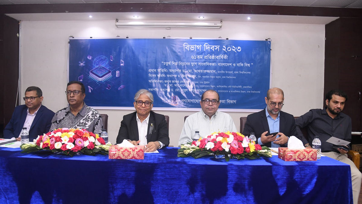 ঢাকা বিশ্ববিদ্যালয়ের গণযোগাযোগ ও সাংবাদিকতা বিভাগের ৬১তম প্রতিষ্ঠাবার্ষিকী উপলক্ষ্যে ‘চতুর্থ শিল্প বিপ্লবের যুগে সাংবাদিকতা: বাংলাদেশ ও বাকি বিশ্ব’ শীর্ষক আলোচনা সভা অনুষ্ঠিত হয়েছে। বুধবার সকালে বিশ্ববিদ্যালয়ের আর সি মজুমদার আর্টস মিলনায়তনে এ অনুষ্ঠান হয়।