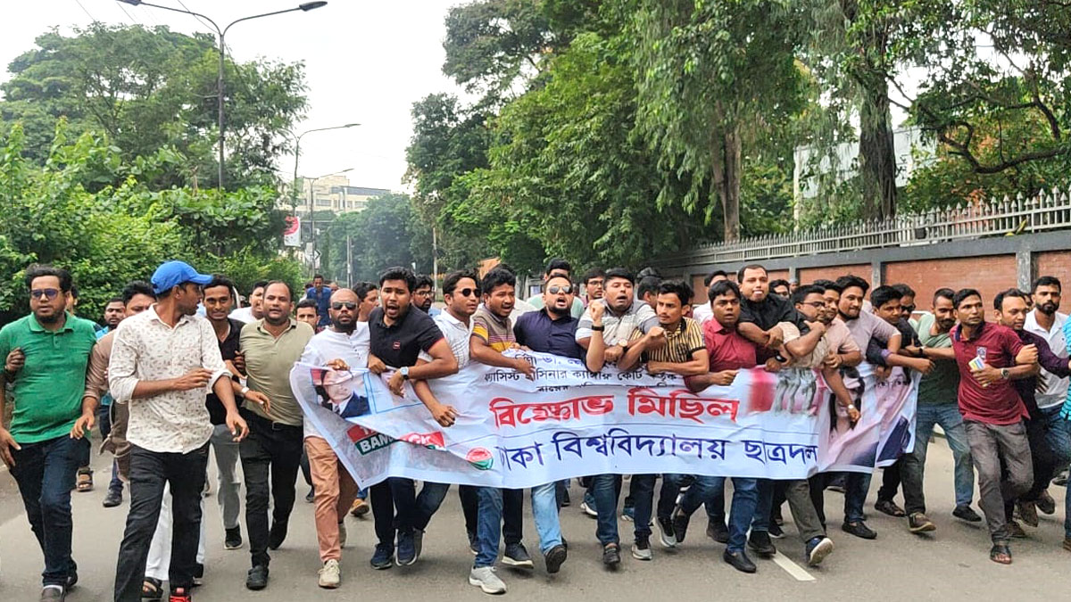 বুধবার আদালত এ রায় ঘোষণা করার পর শাহবাগ থেকে ইঞ্জিনিয়ারিং ইনস্টিটিউট পর্যন্ত বিক্ষোভ মিছিল ও প্রতিবাদ সমাবেশ করে ঢাবি ছাত্রদল।