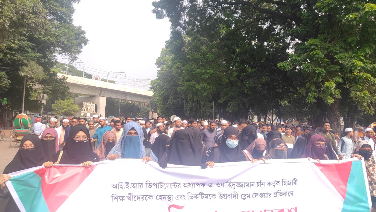 ঢাকা বিশ্ববিদ্যালয়ের (ঢাবি) শিক্ষা ও গবেষণা ইন্সটিটিউটের (আই.ই.আর) ইন্সটিটিউটের অধ্যাপক ড. ওয়াহিদুজ্জামান চাঁন কর্তৃক নিকাব পরিহিতা শিক্ষার্থীদের হেনস্তা এবং ভুক্তভোগীকে উগ্রবাদী আখ্যা দেওয়ার প্রতিবাদে বিক্ষোভ করেছেন সাধারণ শিক্ষার্থীরা। বিক্ষোভ শেষে শিক্ষার্থীদের পক্ষ থেকে বিশ্ববিদ্যালয়ের উপাচার্যের কাছে স্মারকলিপি দিয়েছে সাত জনের প্রতিনিধি দল।