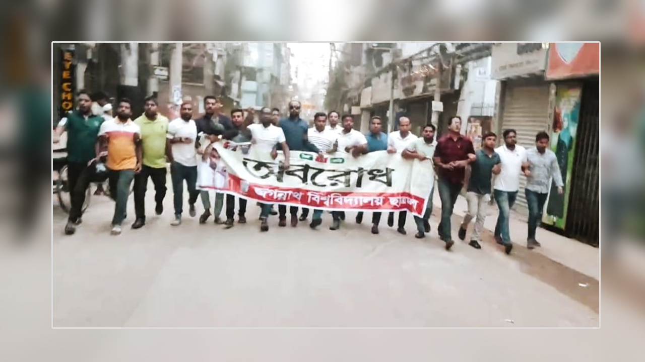 অবরোধ সমর্থনে জবি ছাত্রদলের বিক্ষোভ মিছিল