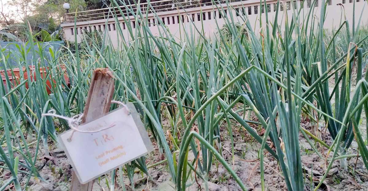 খুবির গবেষণা প্লটে লাগানো দেশি জাতের পেঁয়াজ