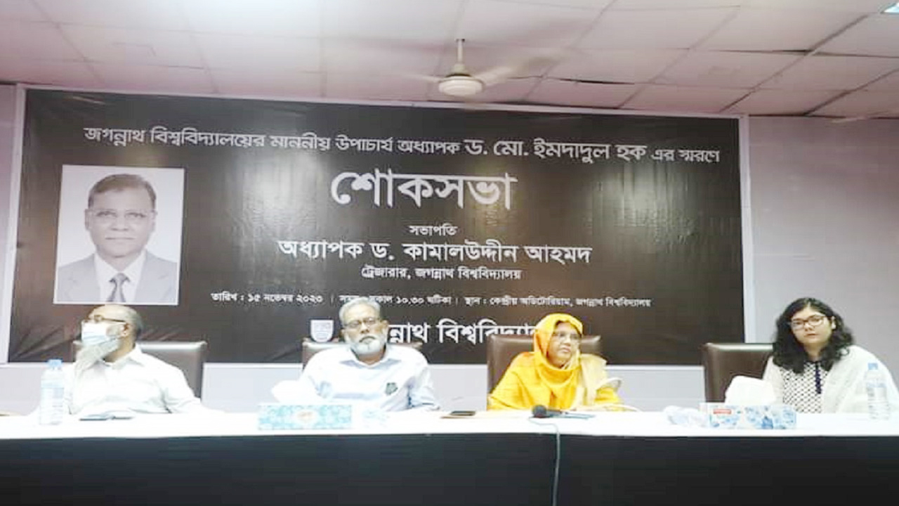 সদ্য প্রয়াত জগন্নাথ বিশ্ববিদ্যালয় উপাচার্য অধ্যাপক ড. ইমদাদুল হকের মৃত্যুতে শোকসভা ও দোয়া মাহফিলের আয়োজন করেছে বিশ্ববিদ্যালয় কর্তৃপক্ষ। এ সময় উপাচার্যের স্মৃতি রক্ষার্থে তার নামে কেন্দ্রীয় মিলনায়তন ভবনের নামকরণ করার প্রস্তাব জানানো হয়।