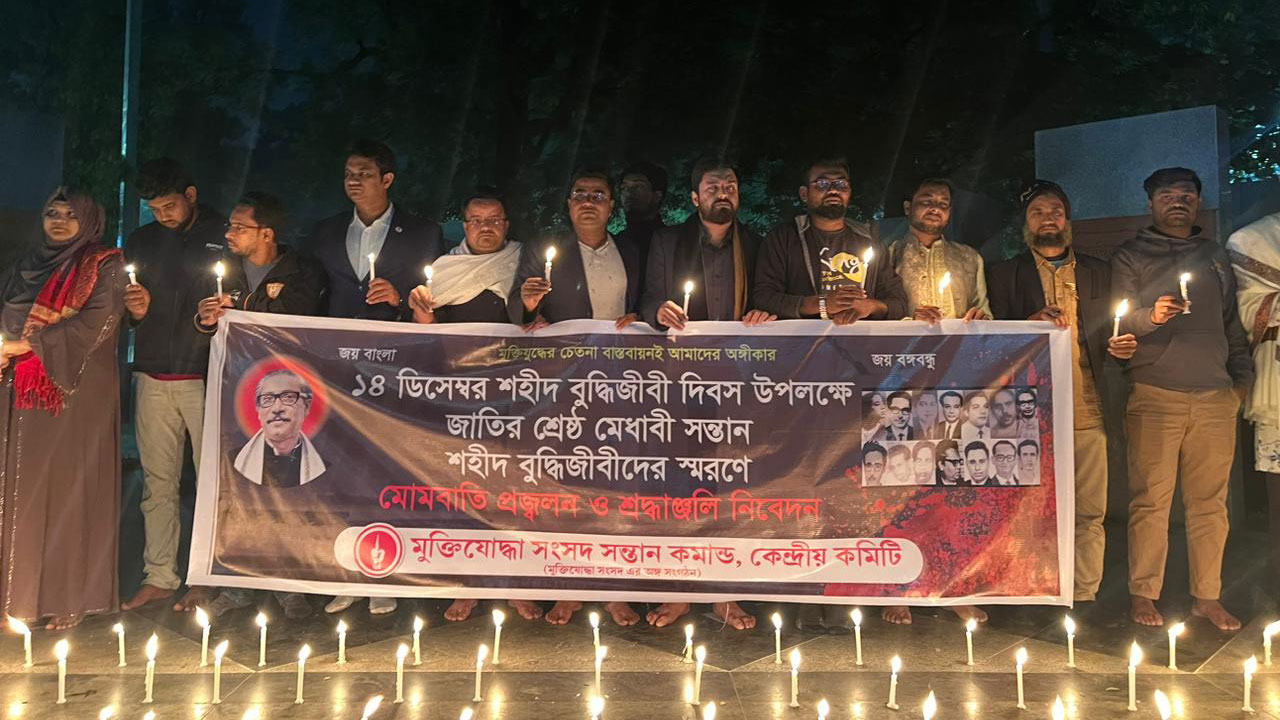 শহীদ বুদ্ধিজীবী দিবসে জাতির শ্রেষ্ঠ সন্তানদের স্মরণে ১৪ ডিসেম্বরের প্রথম প্রহরে মোমবাতি প্রজ্বলন ও শ্রদ্ধাঞ্জলি নিবেদন করেছে মুক্তিযোদ্ধা সংসদ সন্তান কমান্ড, কেন্দ্রীয় কমিটি ও ঢাকা বিশ্ববিদ্যালয় শাখা।