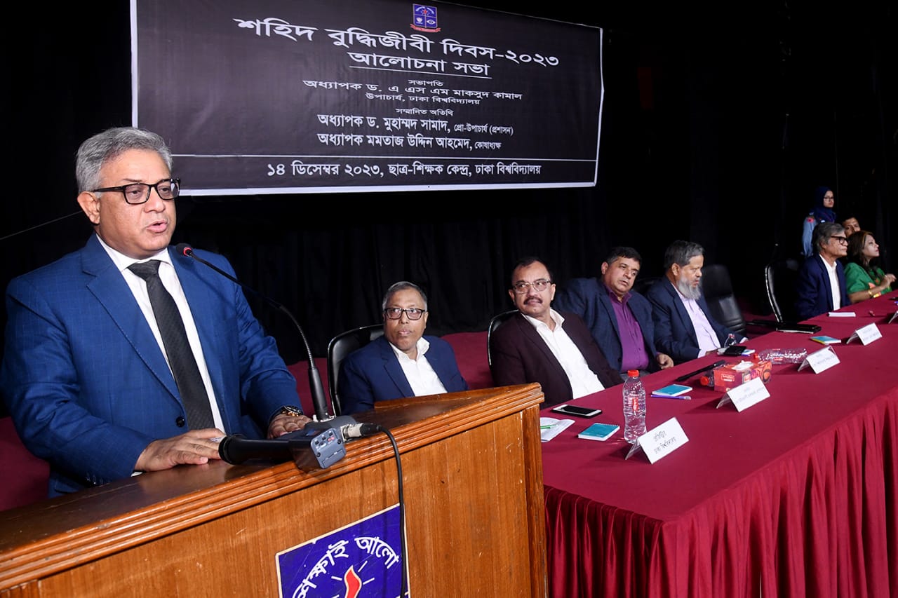 বৃহস্পতিবার (১৪ ডিসেম্বর) ছাত্র-শিক্ষক কেন্দ্র (টিএসসি) মিলনায়তনে শহীদ বুদ্ধিজীবী দিবস উপলক্ষ্যে আয়োজিত আলোচনা সভায় সভাপতির বক্তব্যে তিনি একথা বলেন।