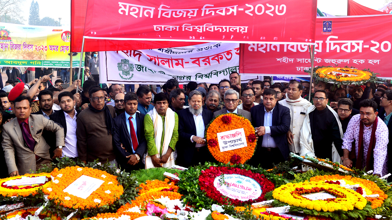মহান বিজয় দিবস উপলক্ষ্যে সাভার জাতীয় স্মৃতিসৌধে জাতির মহান বীরদের শ্রদ্ধা জানিয়ে পুষ্পস্তবক অর্পণ করেছেন ঢাকা বিশ্ববিদ্যালয়ের উপাচার্য অধ্যাপক ড. এ এস এম মাকসুদ কামাল।