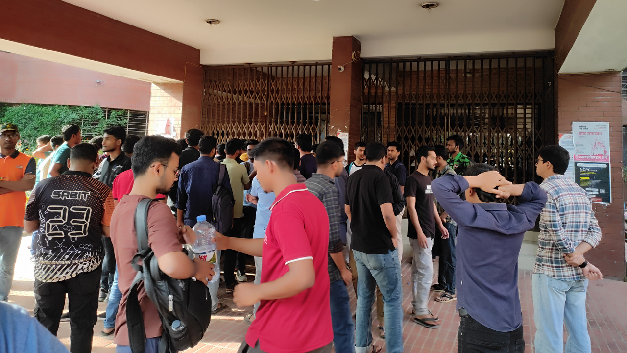 জাবিতে দুই হলের মধ্যবর্তী রাস্তা চালুর দাবিতে প্রশাসনিক ভবন অবরোধ