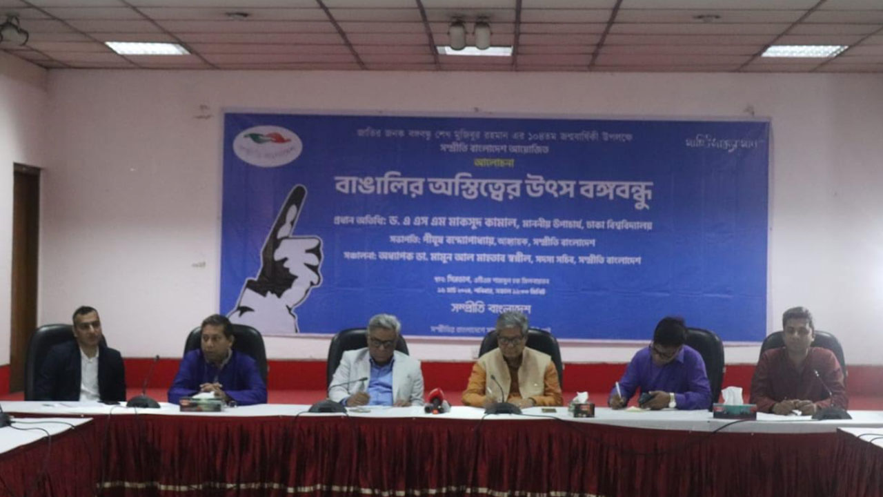 শনিবার (১৬ মার্চ) রাজধানীর সিরডাপ মিলনায়তনে সম্প্রীতির বাংলাদেশ আয়োজিত ‘বাঙালি অস্তিত্বের উৎস বঙ্গবন্ধু’ শীর্ষক আলোচনা সভার প্রধান অতিথির বক্তব্যে তিনি এ মন্তব্য করেন।