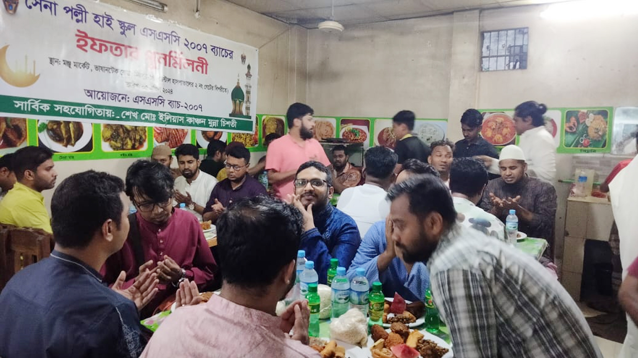 সেনা পল্লী হাই স্কুল, ঢাকা ক্যান্টনমেন্টের এসএসসি ২০০৭ ব্যাচের পুনর্মিলনী ও ইফতার মাহফিল অনুষ্ঠিত হয়েছে। শুক্রবার রাজধানী ঢাকার ভাষাণটেকের মঞ্জু মার্কেটে এ পুনর্মিলনী ও ইফতার মাহফিল অনুষ্ঠিত হয়।