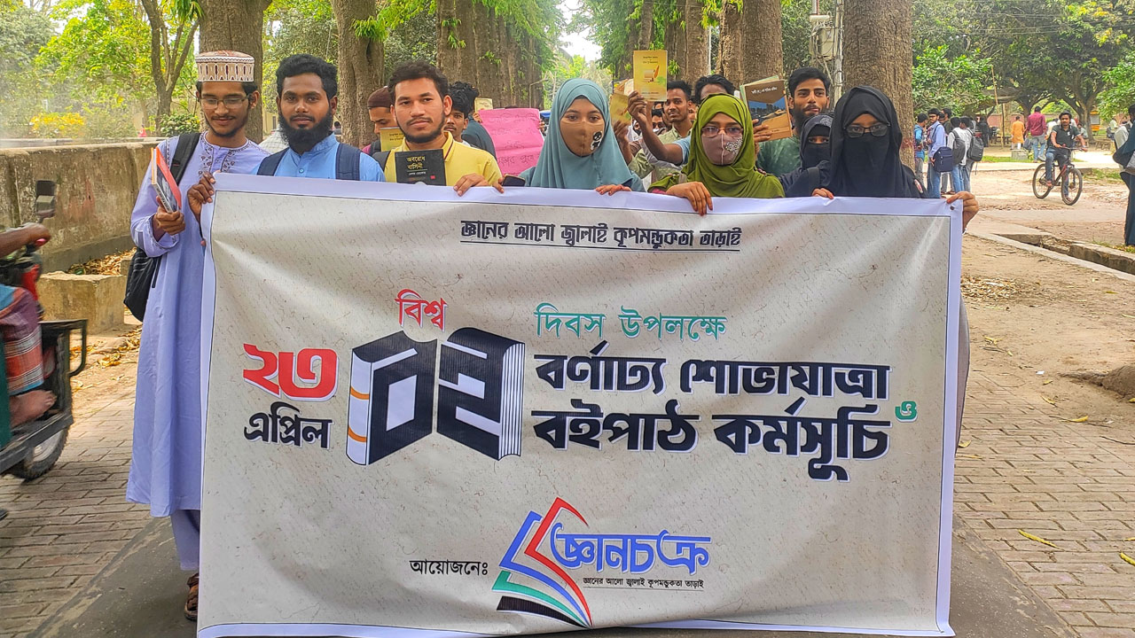 এ নিয়ে বিশ্ববিদ্যালয়ের আরবি বিভাগের শিক্ষার্থী মাহির ইসলাম বলেন, ‘জ্ঞানচক্র’ ক্যাম্পাসভিত্তিক শিল্প সাহিত্য জ্ঞান-বিষয়ক সংগঠন। আমরা সাপ্তাহিক একটা আড্ডা দেই সেখানে টপিক অনুযায়ী বিভিন্ন রকম বই পড়ে থাকি। বিশ্ব জ্ঞানভান্ডারের মহৎ মনীষা ও বিজ্ঞ পণ্ডিতদের নিয়ে আমরা আলোচনা করে থাকি। আজ ‘বই দিবস’ উপলক্ষ্যে বর্ণাঢ্য শোভাযাত্রা ও বই পাঠ কর্মসূচি আয়োজন করেছি।