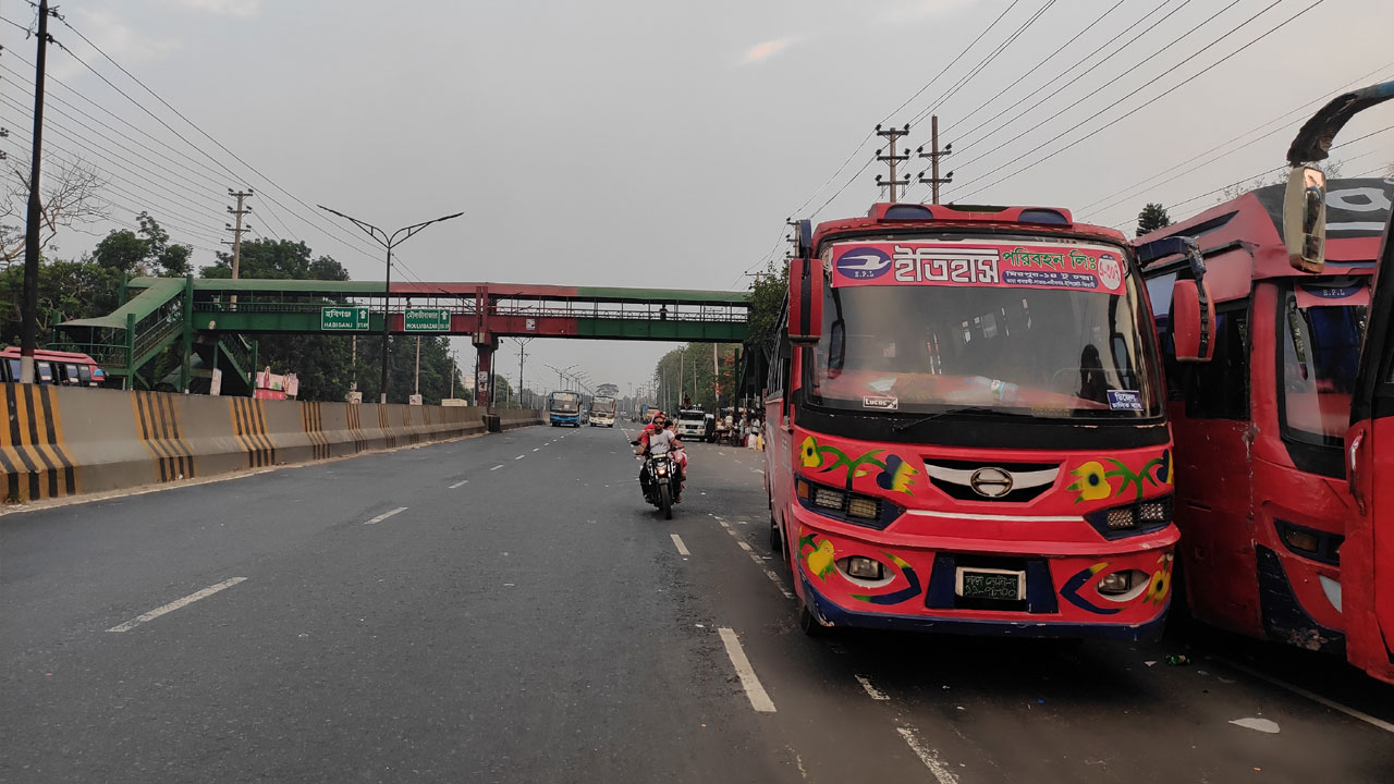 শনিবার সন্ধ্যা সোয়া ৬টায় এই প্রতিবেদন লেখা পর্যন্ত বিশ্ববিদ্যালয়ের প্রধান ফটক সংলগ্ন ঢাকা-আরিচা মহাসড়কের পাশে ৫টি বাস আটক আছে।