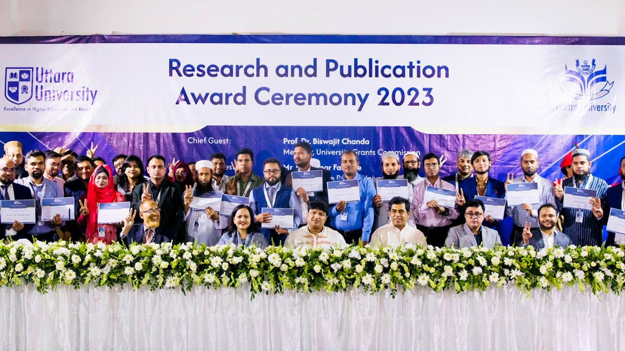 গবেষণা ও প্রকাশনায় বিশেষ অবদানের জন্য উত্তরা ইউনিভার্সিটির ৪০ শিক্ষক ও ৮ শিক্ষার্থী পেয়েছেন রিসার্চ অ্যান্ড পাবলিকেশন অ্যাওয়ার্ড-২০২৩ দেওয়া হয়েছে।