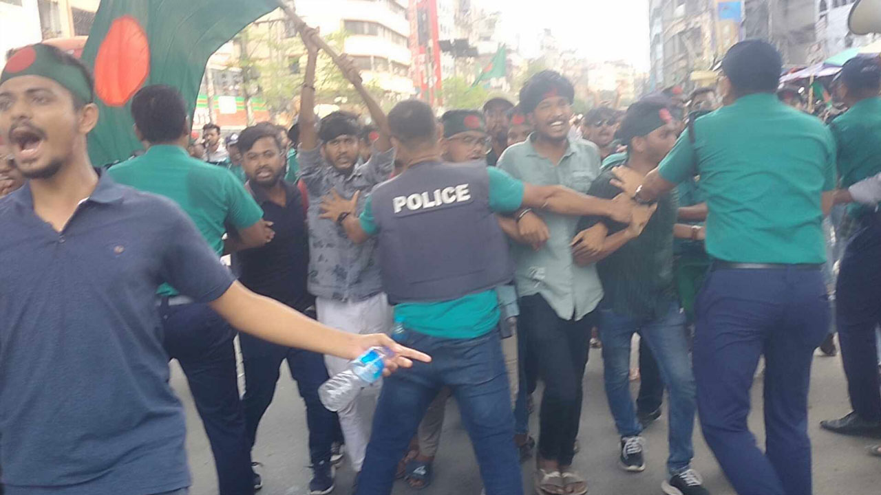 পুলিশের বাধা উপেক্ষা করে গুলিস্তান অভিমুখে জবি শিক্ষার্থীরা