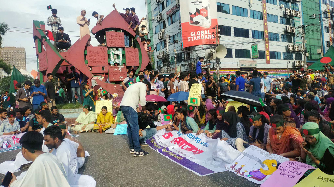 সরকারি চাকরিতে কোটা প্রথা বাতিল এবং ২০১৮ সালে জারি করা পরিপত্র বহাল রাখার দাবিতে ‘বাংলা ব্লকেড’ কর্মসূচির অংশ হিসেবে গুলিস্তান জিরো পয়েন্টে অবস্থান নিয়েছেন জগন্নাথ বিশ্ববিদ্যালয়ের (জবি) শিক্ষার্থীরা।