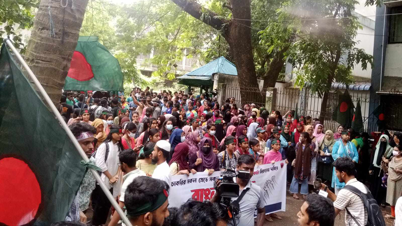 এদিকে সকাল ১০টায় শিক্ষার্থীদের ছোট ছোট মিছিল নিয়ে বিশ্ববিদ্যালয়ের কেন্দ্রীয় লাইব্রেরির সামনে জড়ো হতে দেখা যায়। পরে শিক্ষার্থীরা বিক্ষোভ মিছিল বের করেন। মিছিলটি ক্যাম্পাসের গুরুত্বপূর্ণ স্থান প্রদক্ষিণ করে শাহবাগ, চানখারপুল, বাটা সিগন্যাল, মৎস্য ভবন, মিন্টু রোড, ইন্টারকন্টিনেন্টাল মোড়, বাংলামটর পেরিয়ে কারওয়ান বাজার ও ফার্মগেট অবরোধের কথা রয়েছে।