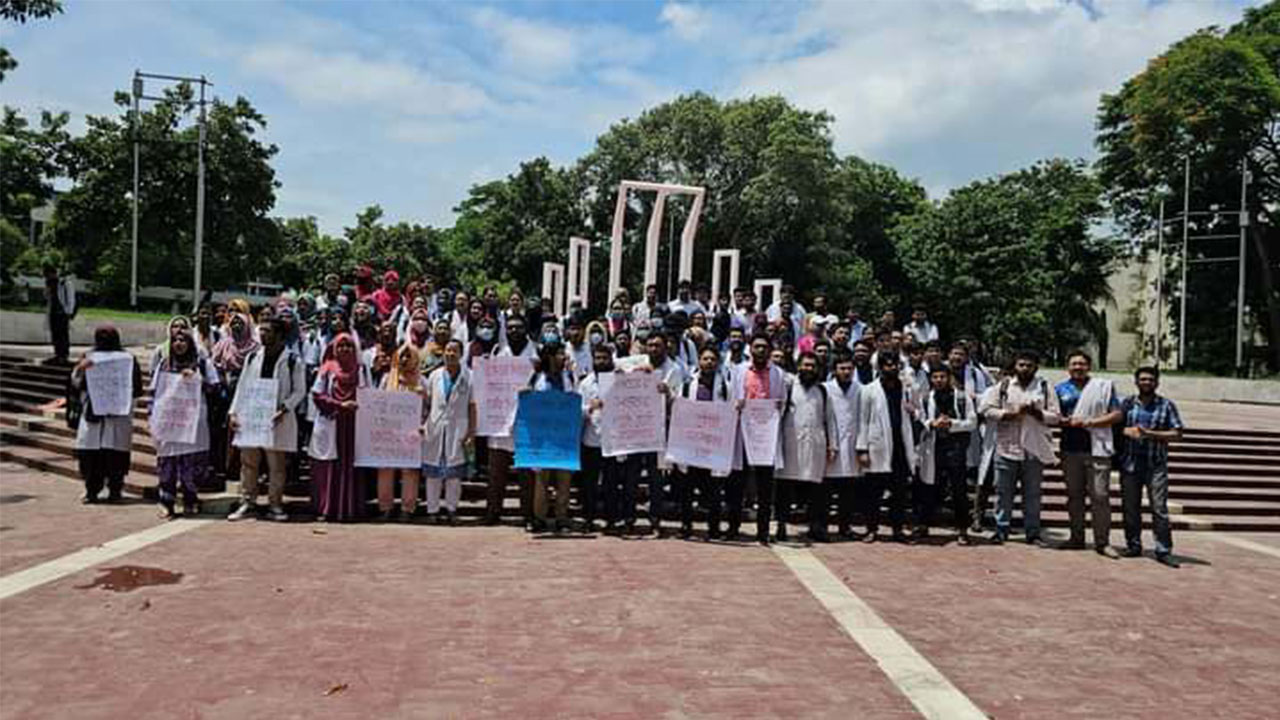 প্রধানমন্ত্রীর বক্তব্য প্রত্যাহারের দাবিতে ঢামেকে বিক্ষোভ