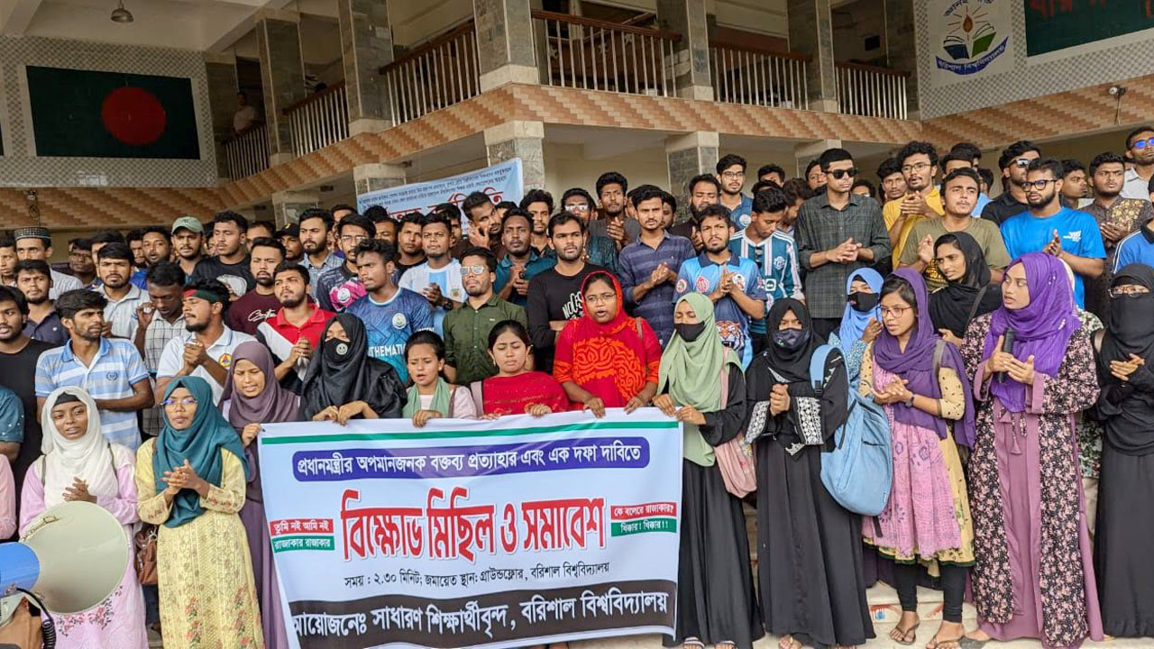 সরকারি চাকরিতে কোটা সংস্কারের আন্দোলন নিয়ে প্রধানমন্ত্রী শেখ হাসিনার অপমানজনক বক্তব্য প্রত্যাহার এবং এক দফা দাবিতে বরিশাল বিশ্ববিদ্যালয়ে বিক্ষোভ মিছিল ও সমাবেশ করেছেন কোটাবিরোধী আন্দোলনকারী শিক্ষার্থীরা। শিক্ষার্থীরা এসময় সরকারপ্রধানের এমন বক্তব্যের সমালোচনা করেন এবং অনতিবিলম্বে প্রত্যাহারের দাবি জানান।